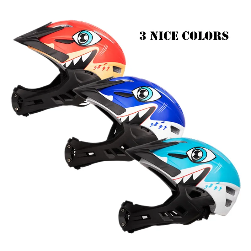 Product Details Product: Children's full face helmet Size: 49-55cm Weight: 420g Usage: Children balance bike, scooter, bicycle etc. Function: To protect users head, face and neck Material Detials Outside shell: PC shell EPS: Import from USA. Construction: In-mold PC shell with EPS liner Chin pad: High-end nylon material Strap: High quality nylon strap